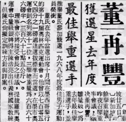 ▲董再丰曾是本地著名举重运动员,1969年曾荣获新加坡“年度最佳”称号(《南洋商报》1969年9月26日)