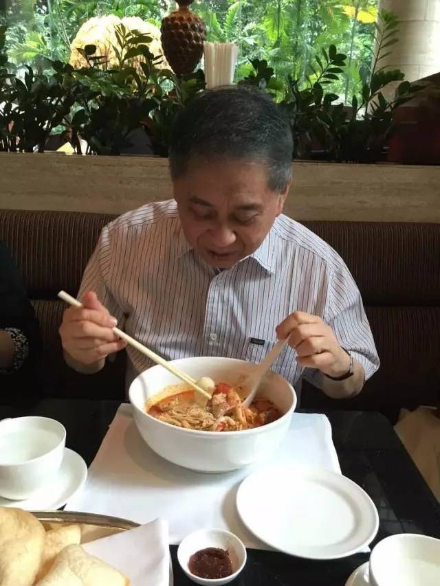 叻沙(Laksa)也是一道典型的南洋美食,一般是用粗米粉配上绿豆芽、大虾、鱼饼,调料则有辣椒、椰浆、咖喱粉等,滋味浓郁,色彩鲜艳,绝对霸气、重口味!白老师没有机会去吃著名的“328加东叻沙”,他的老朋友王润华淡莹夫妇就在喜来登酒店请他吃了一碗叻沙。白先勇广西人,嗜辣,和叻沙一拍即合,几乎把碗里的汤喝个精光。吃叻沙,能把汤几乎喝尽,段位就比较高了。 白老师对“娘惹”两字极有兴趣,他说:“娘字后面跟着一个惹,撩人撩人。”很遗憾,没有带他去吃一次娘惹菜,新马之外,别处倒是吃不到正宗的娘惹菜。我猜他一定喜欢娘惹菜的。