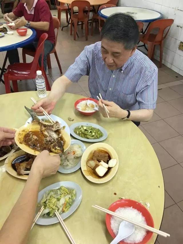 大概真是饿了,非常普通的潮州大排挡食物,白老师吃得津津有味。也好,让他体验一下新加坡的平民食物吧。其实,潮州糜有点类似台北的“清粥小菜”,当然清粥小菜的种类要更丰富些。有一年,我去台北,白老师带我去吃“小李子”,这家的清粥小菜,大名鼎鼎。