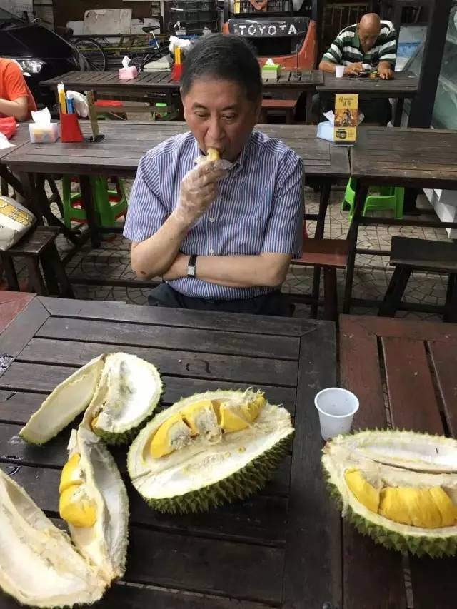 吃了潮州糜,接着又去吃榴梿,是极品皇中皇,他照样吃得不亦乐乎。同时又吃山竹喝椰子水,上火的清凉的,搭配着轮番来。夜里十二点半,尽兴而归。回到酒店,白老师说:“补充了榴梿能量,现在可以把写了一半的《红楼梦》前言继续写完。”要知道这篇万字长文,也有榴梿的一份功劳。