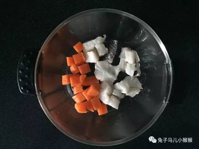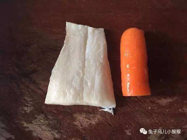 1、将鳕鱼、胡萝卜洗净,切成小块。