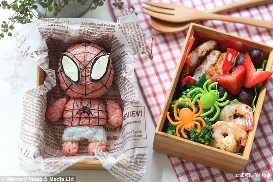 据英国《每日邮报》报道,一位来自新加坡的母亲——38岁的李铭,从将米饭构造成超级玛丽开始,至今已创造出了一百余种色彩缤纷、造型各异的午餐便当 。
