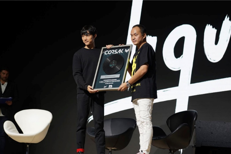 当天发布会上的另一大“亮点”,则是签约于Liquid State的首位华语艺人CORSAK,在会间凭其于2018年发行的单曲《溯 Reverse》被授予了10亿流媒体播放的荣誉认证。该单曲曾冠顶国内短视频音乐榜第一名,及QQ音乐热歌榜第七名。