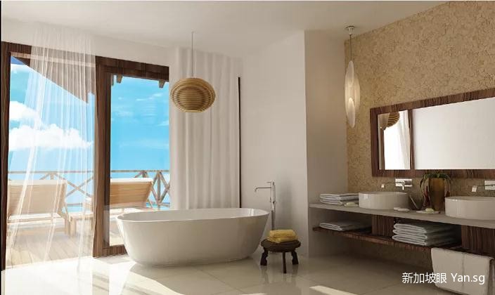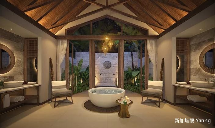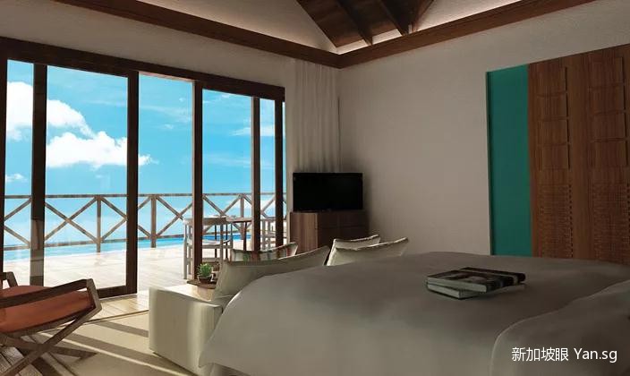 海上别墅建立在绿松石泻湖上,由木质浮桥连接着岛屿,好像漂浮在绿色的泻湖上面,别墅采用日光躺椅和户外用餐区来扩展双层阳台来打破纯粹的隐私,客人将在豪华别墅中感受岛着淡淡的海风吹拂和远处的地平线景观并可以通过别墅的木楼梯扶手直接通往诱人的泻湖。