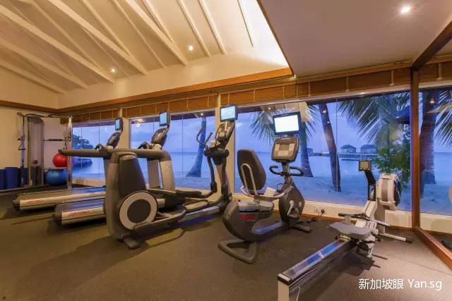 除了餐饮,休闲设施也是非常齐备。健身房也是无敌海景。