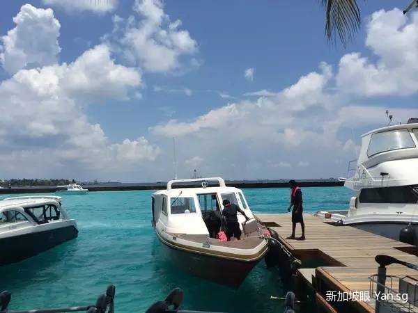 到达马累,从机场离开以后,乘坐20多分钟的快艇就能上岛了,小黑会准备一瓶矿泉水,还会主动帮忙提行李,挺贴心的。