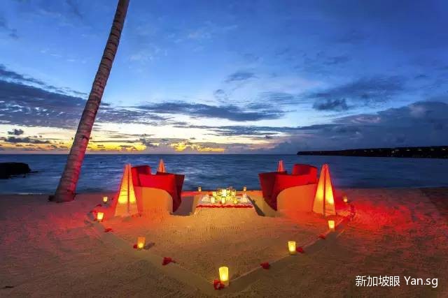 如果觉得这些都不够浪漫,想给爱人来个惊喜的话,可以提前让管家准备一个沙滩烛光晚餐。