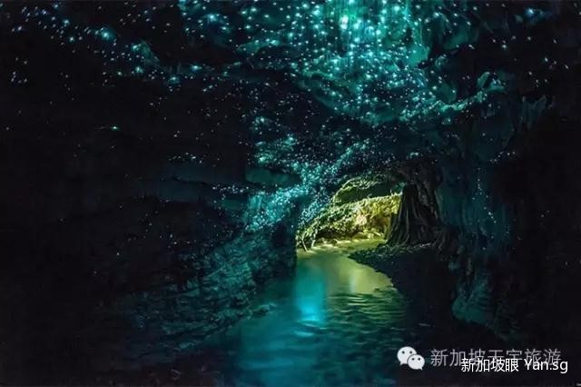|| 新西兰的萤火虫没有翅膀,不会飞,就像蚕宝宝一样静静趴在洞壁上,一动不动,发出的光亮,吐出的长丝如同珠帘一般,晶莹剔透,泛出蓝光,南岛上的萤火虫只在幼虫形成期的9个月肚皮和尾部发光,成虫后72小时之内死亡,一生极短。虫宝宝怕光、怕声音,所以进洞内要保持安静。由于它们对生存环境的要求近乎苛刻,遇到光线和声音便无法生存。所以此行的拍照时不允许的,只有自己身临其境去体验