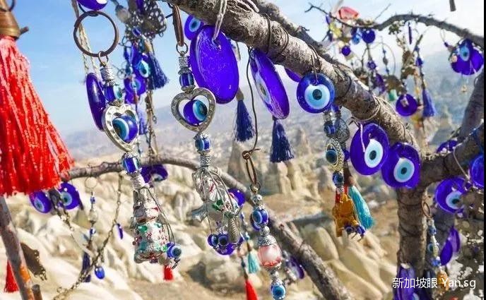 鸽子谷是一个天然的自然景观,在幽美的山谷两边,到处的是大块的石头,石头上都是密密麻麻大小不一的鸽子洞。著名的挂满“蓝眼睛”的树也在这里,一大片蓝色如眼镜的挂件正是深受土耳其人喜爱的护身符。