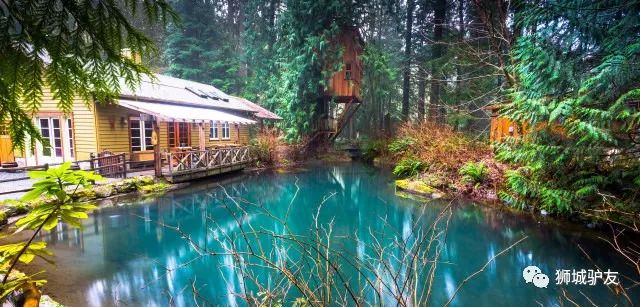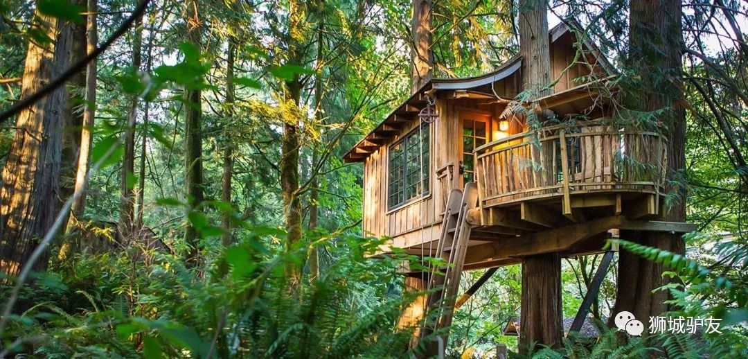 从西雅图出发,30分钟的路程就可以带你逃离窒息的城市,Treehouse Point有着六间风格各异的树屋。在绿叶环绕的树杈间一觉醒来,脚下就是晨光里蓝色的湖水。
