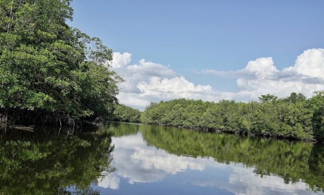 红树林的正确打开方式其实是绿色的,所谓的红色并不是呈现于外表的,只有剥开万年古树的表皮,才能够看到红色的树干。 这是一种珍贵的树木,生长于陆地与海洋交界处的浅滩,根系非常的发达,可以抵御海啸。