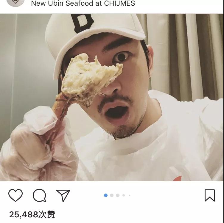 照片里的他拿着一只“肥硕”的蟹腿,张大嘴惊叹,“Wah,so shiok ah!”(哗~好爽呀!)这超级地道的Singlish,不愧是在新加坡拍过戏的“大仁哥”~