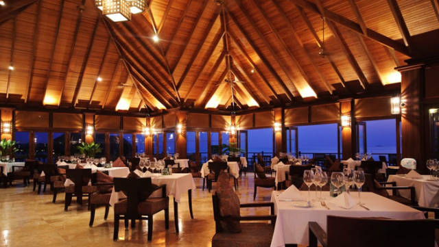 营业时间:早餐: 07:30 – 10:00hrs ;午餐 12:30 – 14:30hrs ;晚餐 19:30 – 21:30hrs餐厅完全坐落在水之上,是双鱼岛的主餐厅,提供一日三餐,各国口味的菜肴定能满足您的胃。目前新来的行政总厨在晚餐上将餐饮标准提高了不少,自助菜品丰富,迎合中国游客的口味。