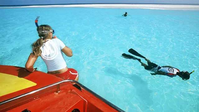 浮潜之旅 | 无人岛体验:潜水中心甲板附近海域有大量的海生物,浮潜质量顶级,此外每天晚上可以在潜水中心甲板上观看鲨鱼,鱼群秀,深受情侣和小孩的喜欢。温馨提示,记得穿浮潜服以及做好防晒哦~