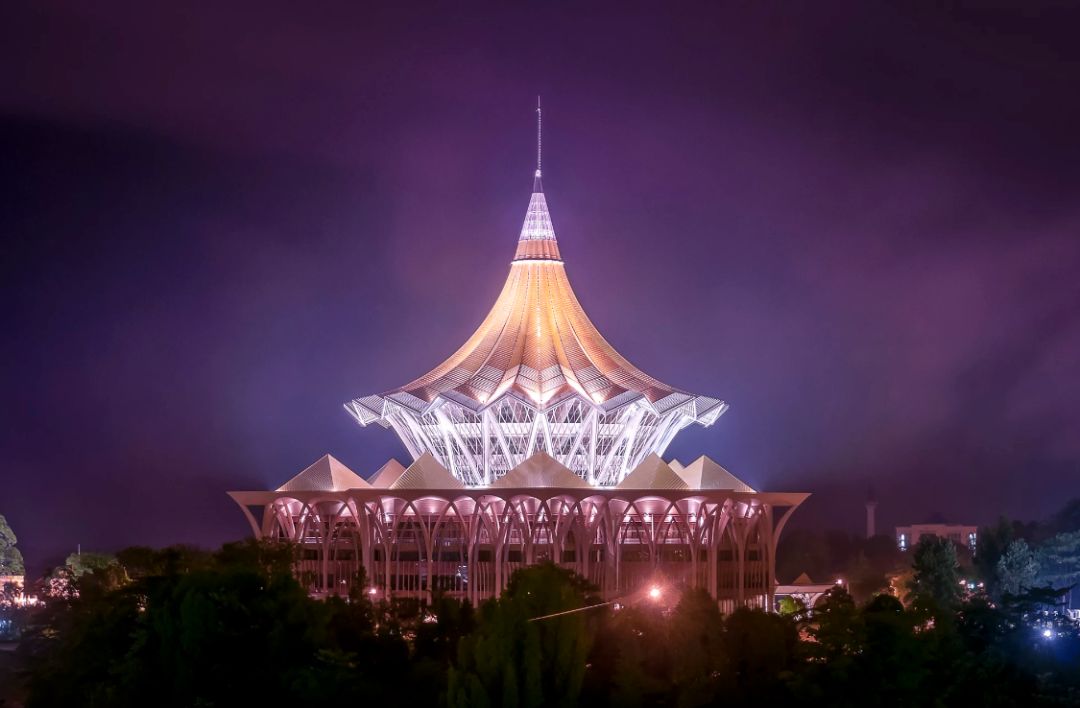 || 沙捞越州立法议会大厦这座特别的建筑很容吸引游人的目光,这也是古晋的新地标。很多人会猜测它是座现代博物馆或美术馆,但实际上,它是严肃的沙捞越州立法议会大厦。屋顶是罕见的九角结构,寓意着猫的九条命,古晋人对猫的喜爱可见一斑。
