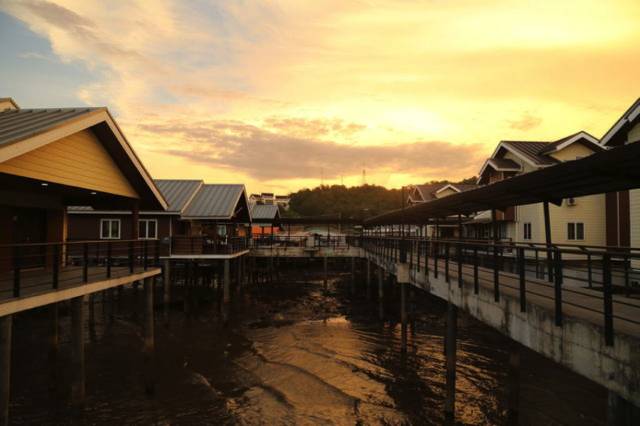 文莱水村(KampungAyer),是世界上最大的传统水上村落。历经几个世纪的水上城市依然留存着昔日的风貌,各种由石柱支撑,木板盖成的水上房屋布满了文莱河的两岸,由大约10个建在水上的村落组成,据说有600多年的历史,目前有大约3万居民。村中除了住家,还有学校、清真寺、邮局、消防队、诊所、村委会等公共机构,形成一个相当独特的水上社区,成为文莱的著名景点之一,生活是现代和传统的结合,很有情趣,难怪有文莱人宁愿“水上飘”,也不愿“陆上居”。