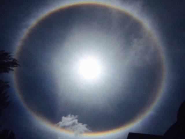 在度假区的海边玩,抬头看到日晕,这是我第一次看到日晕。