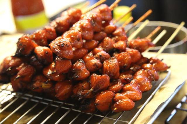 这是文莱的名小吃鸡屁股,1汶币1串,加了蜂蜜,甜甜的,很有特色,但是吃多了会比较油腻。大叔知道是鸡屁股后,完全没有吃的欲望,有点替他遗憾,哈哈。