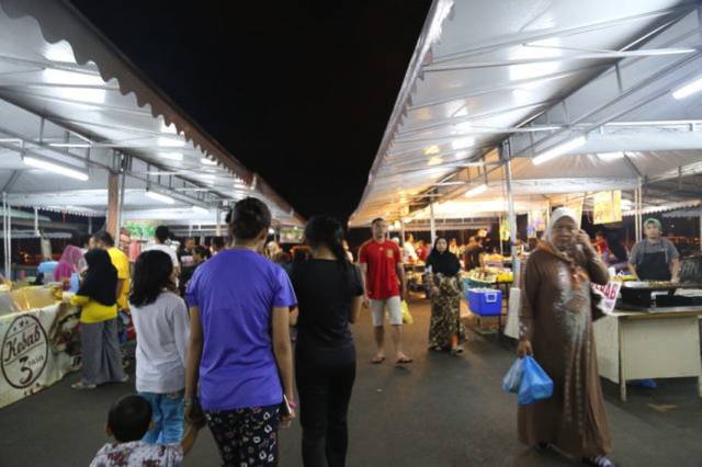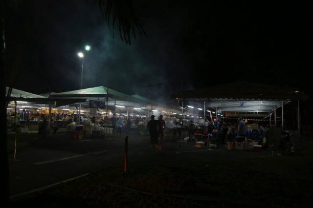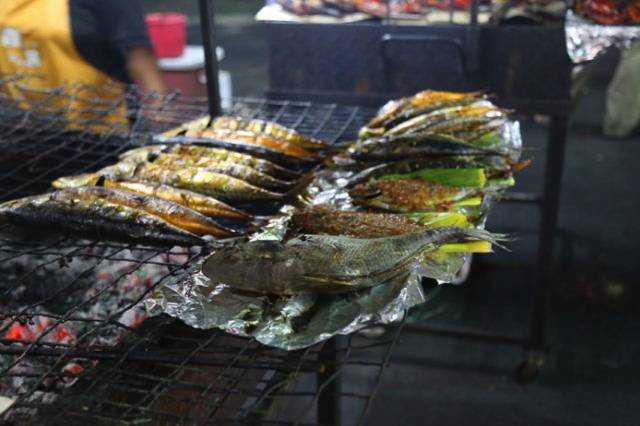 拍完清真寺夜景,直接去 Gadong夜市吃东西。远远地就闻到美食的味道。