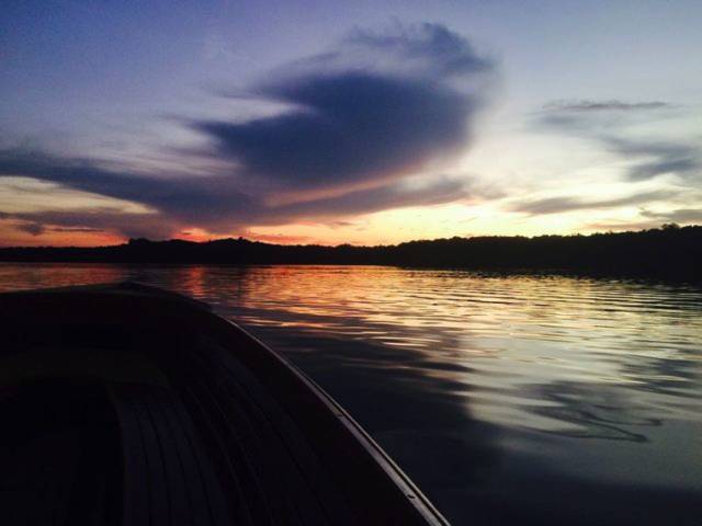 在森林边的时候,船家将船熄灭,任船静静的在河面上漂,风吹着,鸟鸣着,远方的晚霞慢慢消散着,躺在船上,闭着眼睛,感知这一切,再也没有喧嚣。感觉天地间,只有宁静,那一刻,我忽然想到电影《少年派的奇幻之旅》中,夜晚他躺在船上,上方是满头的星空,海洋里是各种海洋生物。