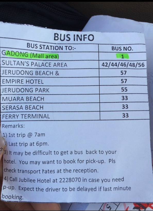 1路车可以到 Gadong地区,可以将the mall ,蓝清真寺,夜市,放在同一路线走。