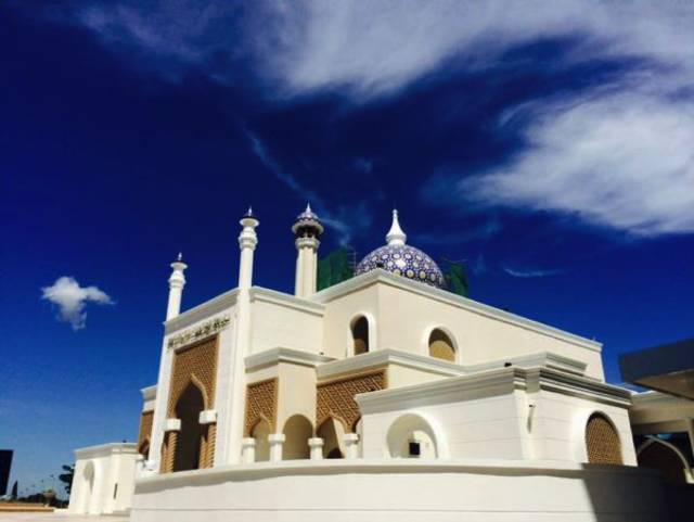入境,换钱,拿行李,不知不觉一个小时就过去了,想起接机的时间说的是早上9点,可是已经10点了,出去找了一圈都没有找到接机的人。没有电话,最后求助于信息台的工作人员,我们本来是想问哪里可以找到公用电话,但是她直接帮我们打电话了!那一刻,感觉文莱人太好了!酒店告知原来是接机的人已经等了一个小时,没有等到我们就走了。我们又等了大概半个小时,接机的帅哥就来了。最后顺利坐上车到达酒店。所以,建议在说接机时间的时候,晚一个小时,这样时间会比较充足。在等待的时候,小逛了一下文莱的机场,机场旁边就有清真寺,天空那叫一个蓝!