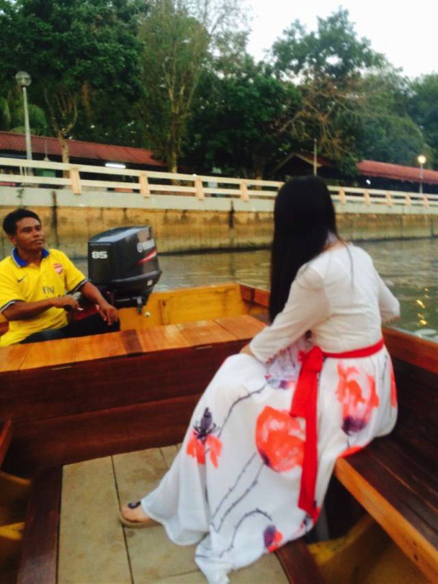 幽默的船家一路让我们跳下去游泳,说深度只有几米,具体几米没听清楚。我们才知道文莱河其实并不深。他英文挺好,说让我们坐着他的船回中国,哈哈。反正玩的倒是挺开心!