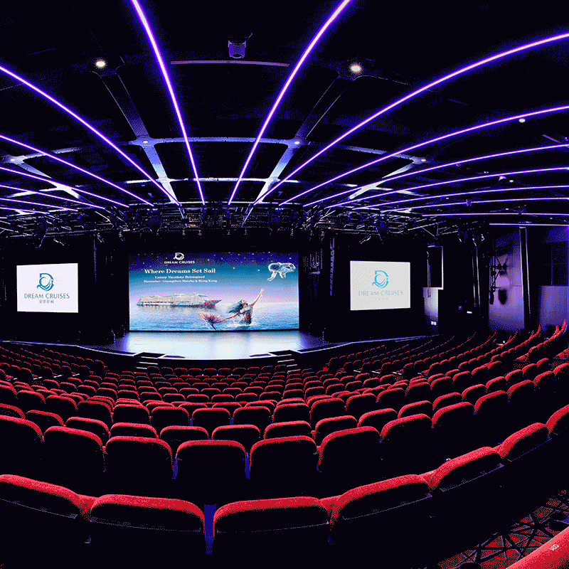 【云顶梦号】7楼船头的星座剧院,总是 能带给你精彩有趣老少咸宜的表演娱乐,耳熟能详的开场音乐,活力四射的灯光舞台特效,互动度极高的现场观众投票,精彩绝伦的演出,坐等你的到来~