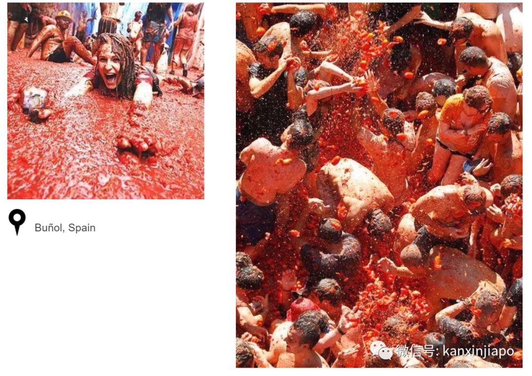 火热的八月不如参与一场火红的狂欢吧——八月的最后一个星期三,西班牙的布尼奥尔镇Buñol会被熟透多汁的番茄淹没——没错,就是有名的番茄大战La Tomatina。数以万计的参与者从世界各地赶来参加一场不会造成伤害的混战,在大街上投掷超过100吨熟透多汁的番茄。由于布尼奥尔的住宿条件有限,因此许多参与者住在巴伦西亚,而乘汽车或火车来到距巴伦西亚38公里的布尼奥尔小镇。街道两旁的商店在番茄大战前紧闭门窗,并用塑料布遮盖,以免在大战中被弄脏。