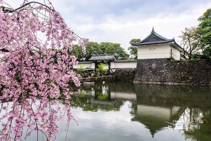 皇居·二重桥:日本皇居是天皇的起居之地,位于东京中心千代田区,是天正十八年(公元 1590 年)由德川幕府第一代将军 德川家康修筑。自 1868 年由京都迁都东京以来,已历四代天皇,即明治、大正、昭和及平成天皇。皇居一般不对外开放, 但皇居四周的大片绿地却是市民的免费公园。这一处占地 23000 平方米的日本传统建筑,它有绿色的瓦顶、白色的墙壁和 茶褐色的铜柱。其中正殿是整个宫殿的中心,皇室的主要活动和外交礼仪都在正殿的“松之阁”举行,长和殿是天皇接受 群众朝贺的地方,丰明殿内有大宴会场,常御殿为天皇内宫。此外,宫内还有花阴亭、观瀑亭、霜锦亭、茶室、皇灵殿、 宝殿、神殿、旧御府图书馆等等。一条护城河环绕皇居,两岸樱花树,林木掩映,河上一道二重桥,是皇居的象征,常有 游人和它拍照合影留念。