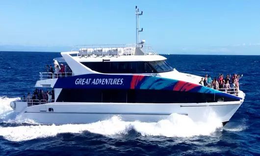 隆起于大堡礁水域的绿岛,是一座面积不大的珊瑚礁岛屿。我们从码头乘着超豪的大冒险号邮轮前往绿岛