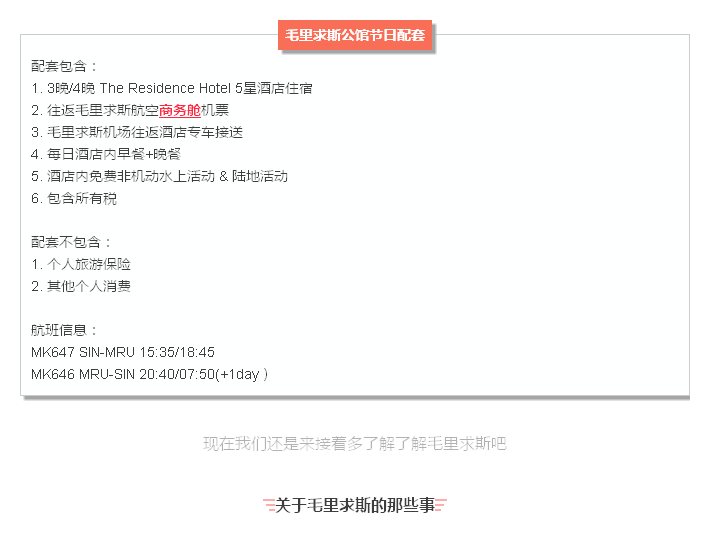 2、前往毛里求斯的往返机票,打印好你的机票行程单。