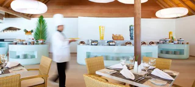餐饮介绍三餐在 Haruge 、Malaafaiy 或 Farivalhu 餐厅。分歧房型所应用餐厅分歧,如在其余单点餐厅享用晚饭 8 折,提早24 小时预约。
