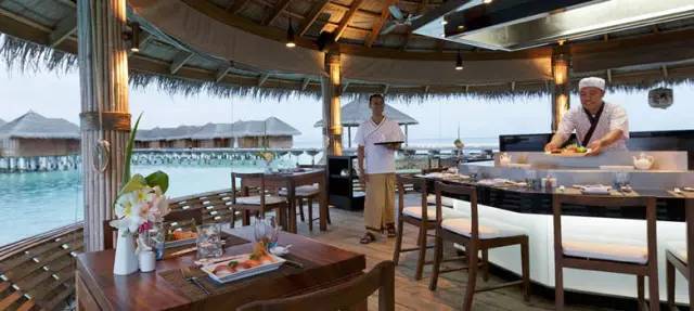 马富士瓦鲁岛日本餐厅(Japanese Restaurant)||喜欢日式料理的朋友可以来马富士瓦鲁岛的135度日本餐厅。因餐厅位于岛屿绿松石泻湖旁边,可以135度的欣赏震撼的日落场景,餐厅的名字便由此得来。餐厅里提供当代的各种铁板烧,及寿司美食。