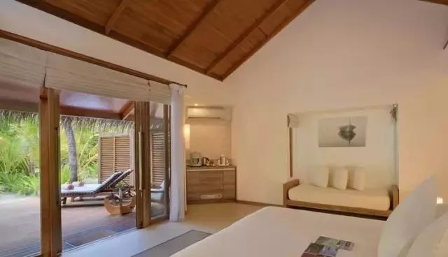 ||房间有90平米,坐落在岛上的自然园林,木制的海滩别墅,按摩浴缸,是个庆祝浪漫的好地方。卧室内拥有大小床和沙发床,而舱外,提供了两个沙发床和日光浴床。浴室宽敞、开放,角落里放置着一个诱人的按摩浴缸。