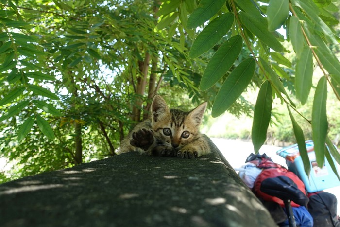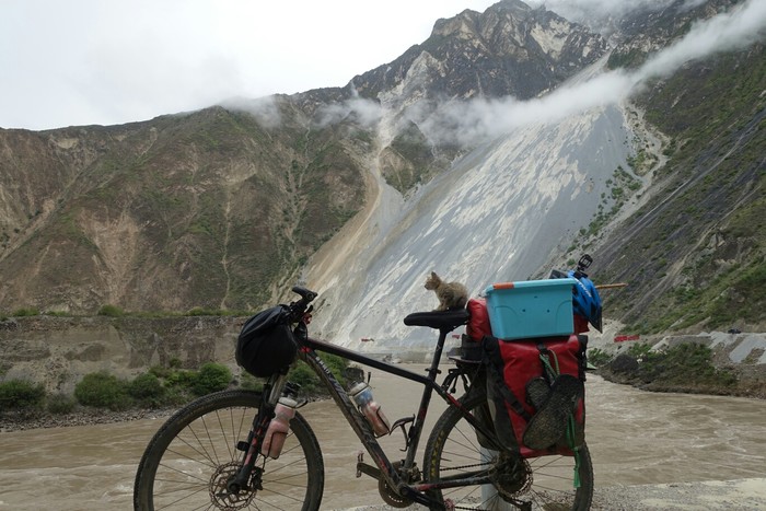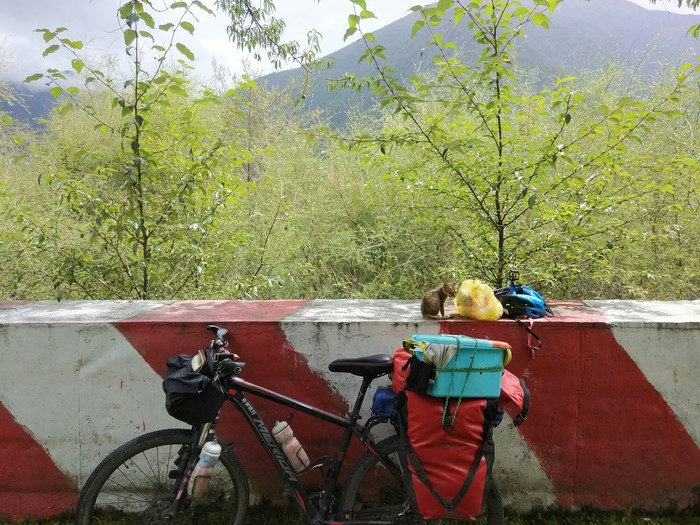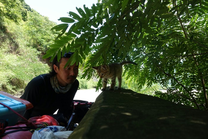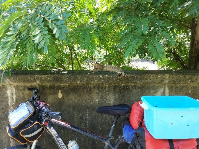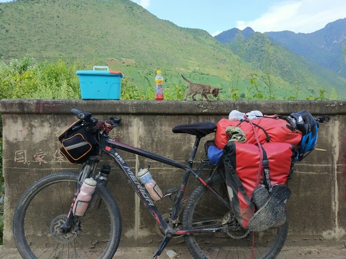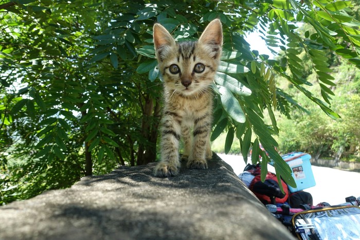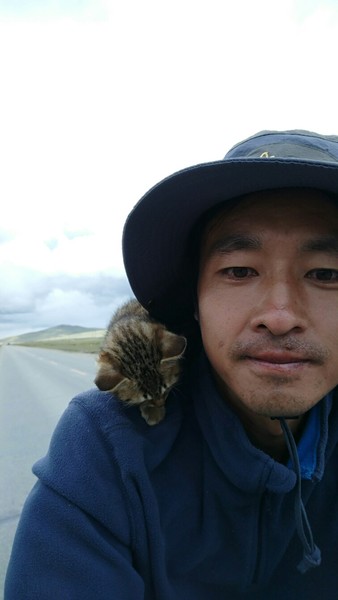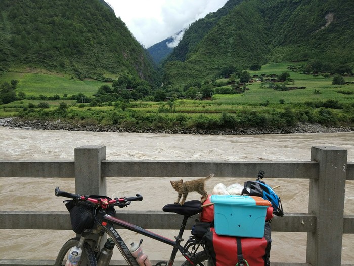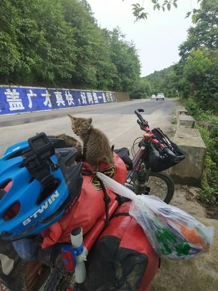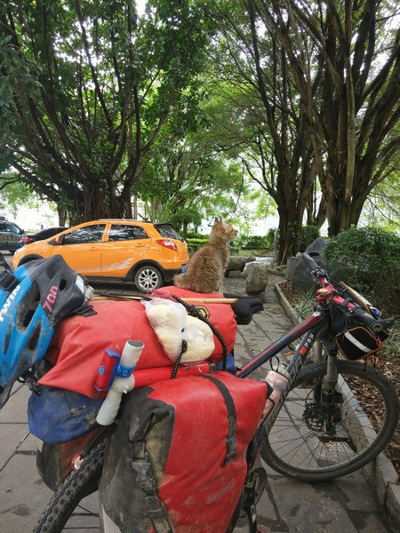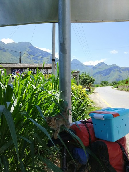 新加坡骑回中国,在云南捡只流浪猫