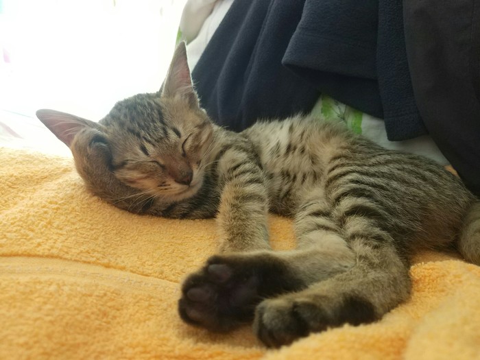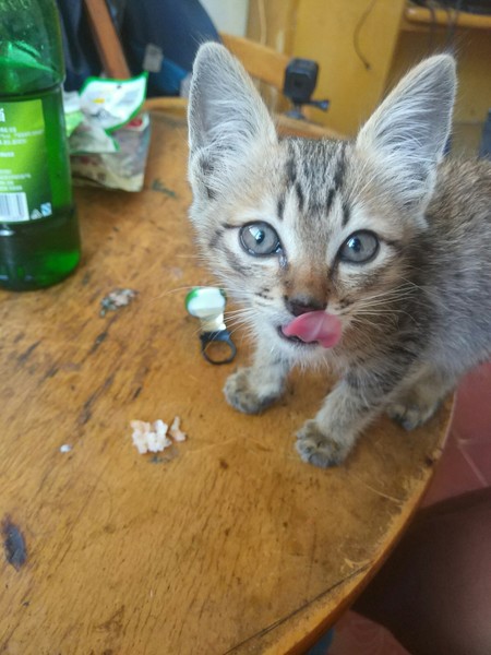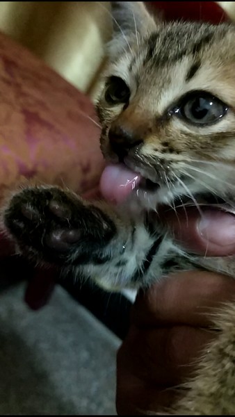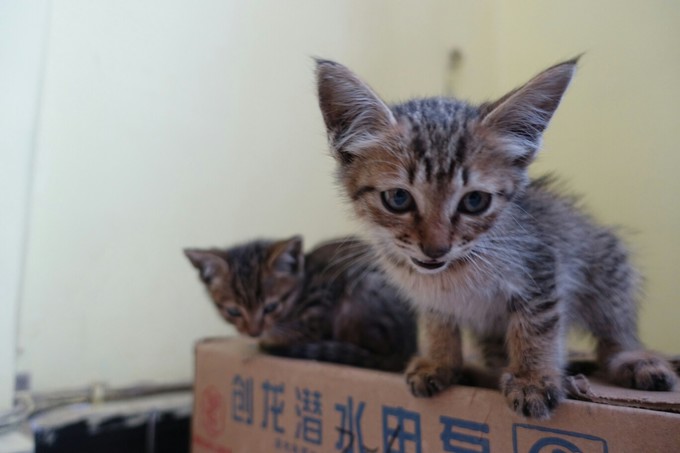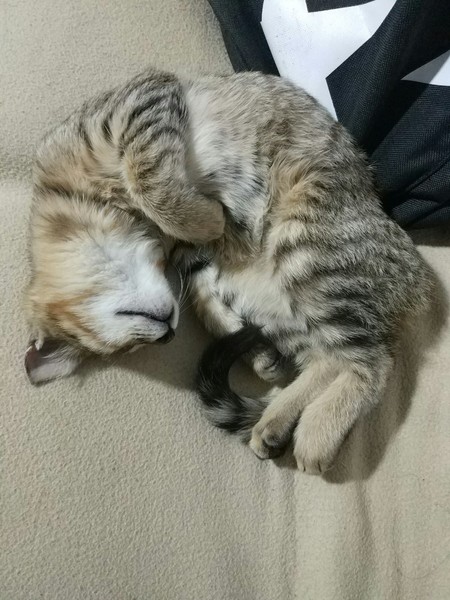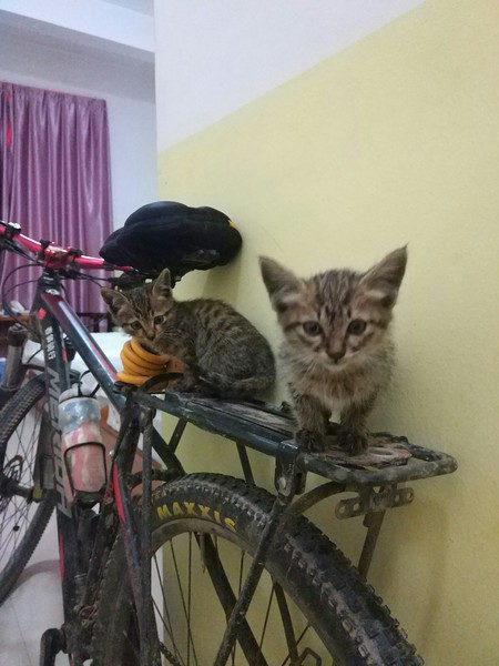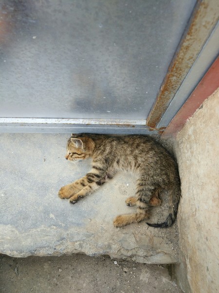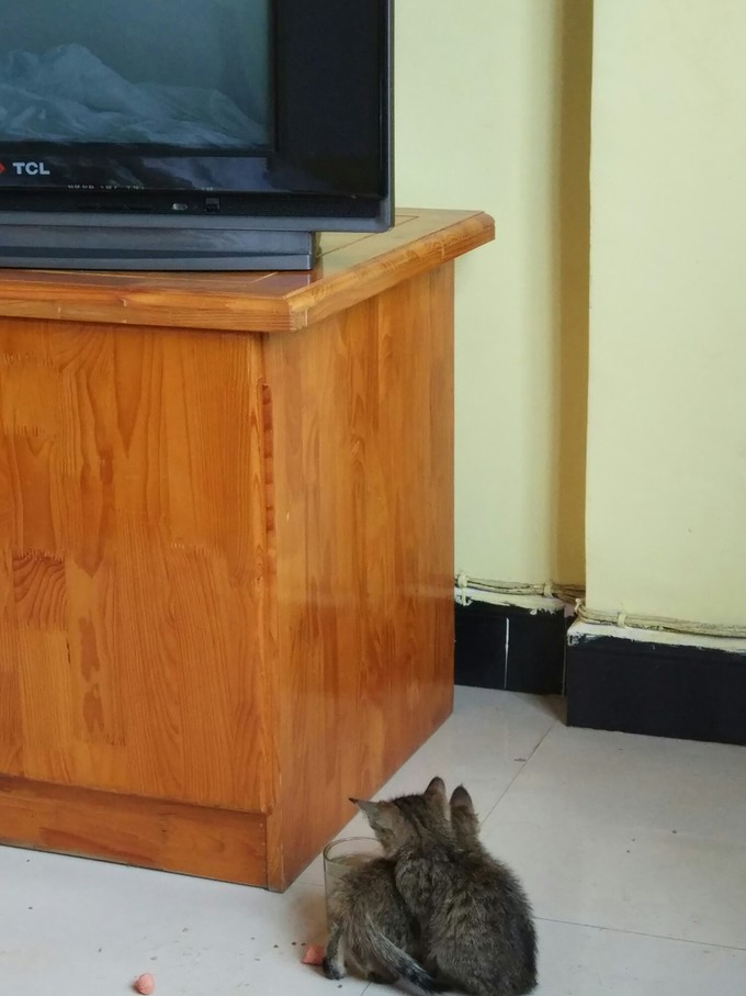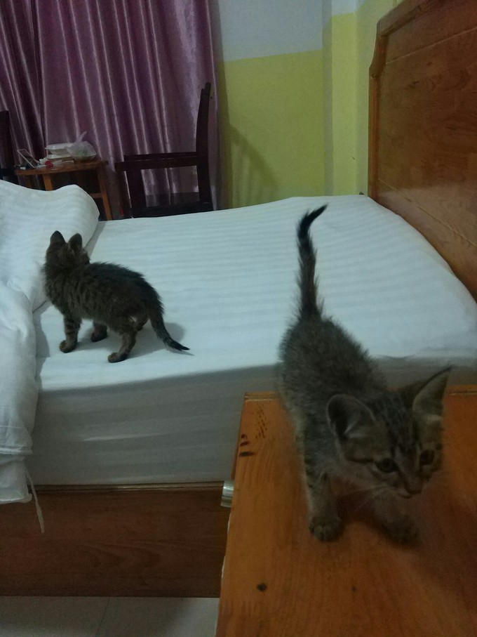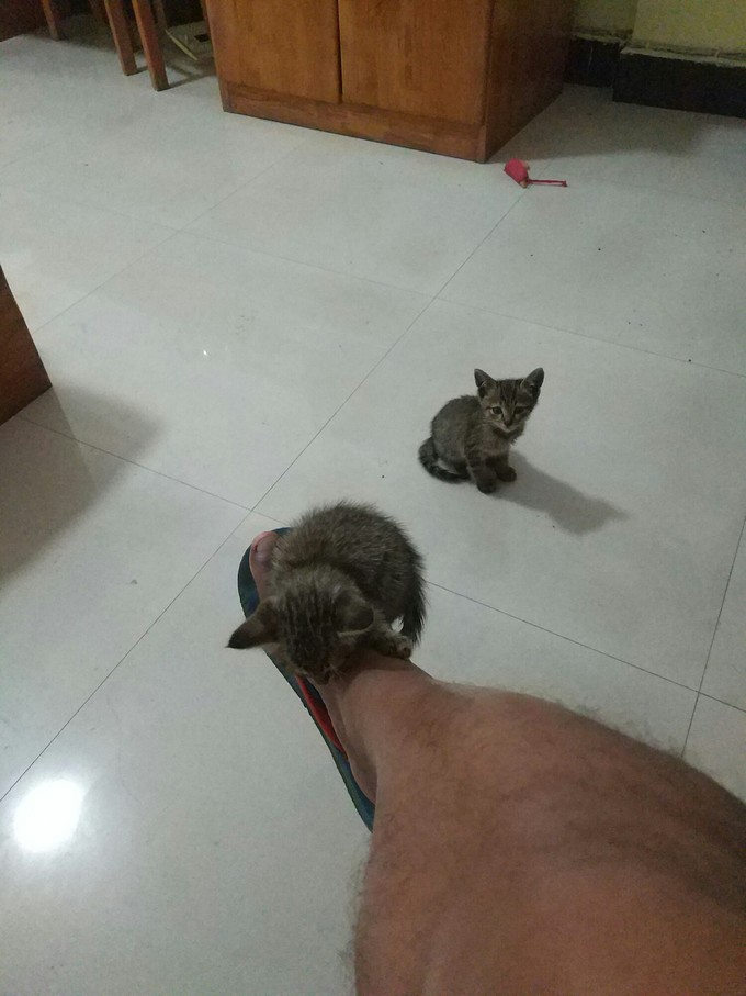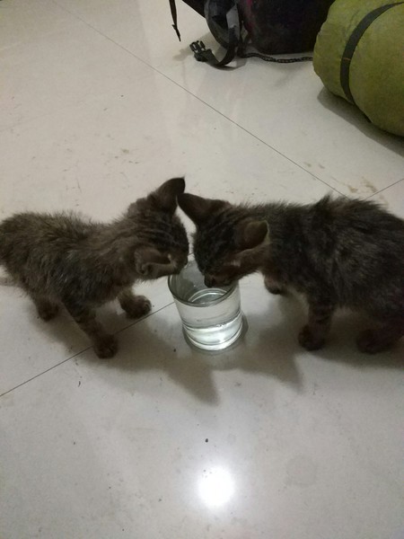 路边有两只,过去抱的时候,内向那只一直往草丛里跑,翻开杂草,发现还有一只已奄奄一息,已翻白眼,体型稍大,估计是她们妈妈,后来想想,那只内向的猫咪也许是故意引导我去草丛,如此成熟也许内向那只是外向那只的姐姐,但是没办法,我带走了两只小的。