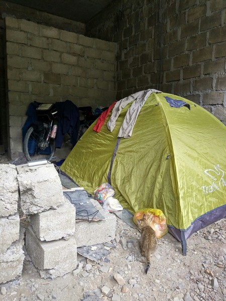 ⬇在这搭帐篷时候是第一次用睡袋,害怕她尿睡袋里,所以把她放在睡袋帐篷外面,后来觉得外面太冷,又喊猫咪,进来了,再想想,我又把她放出去了,我好纠结,再喊她的时候,就没回应了,不搭理了,喊半天没声,出帐篷去找,在木板夹层里面哆嗦呢,怎么叫也不出来她是不是在想“枉我待你如初恋,你却骗我千百遍”