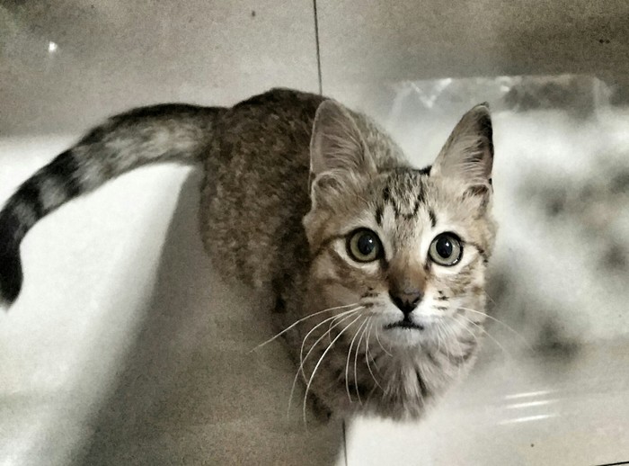 买了除跳蚤的药水,刚用,猫咪就口吐白沫,赶紧把药洗掉,灌水,好了,她真是什么都经历过….(gopro视频截图)
