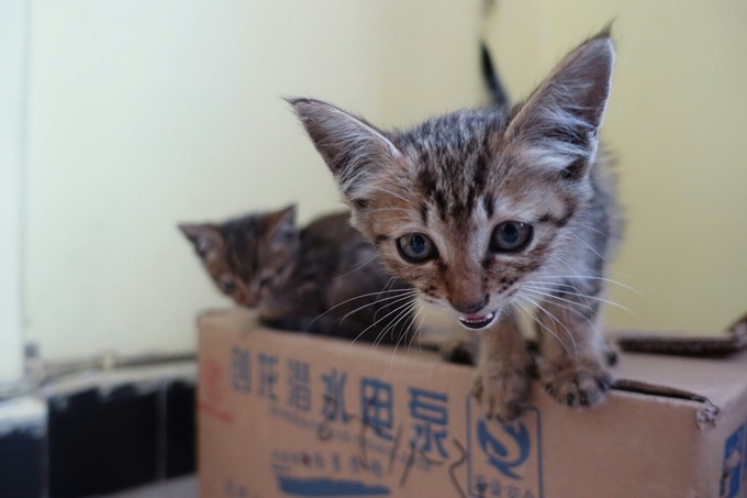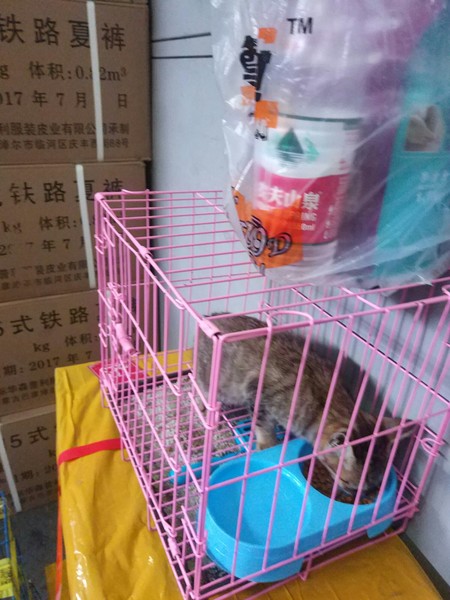 百米外商店找个纸盒子开孔打包两只小猫,再买点火腿肠。