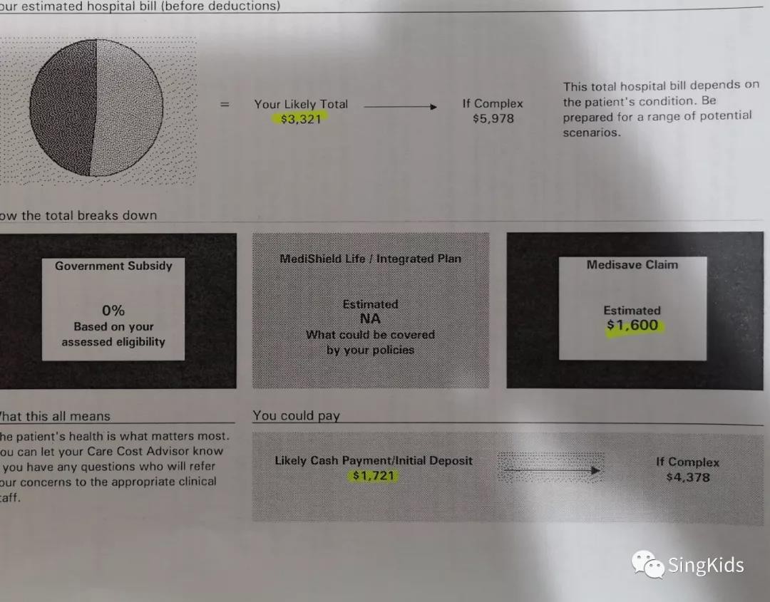 初步账单显示3321元。Medisave claim 1600元,需要自行先付现金1721元,也就是需要再补缴现金1528元。之后正式账单会寄到家里,同时医院会找保险公司报销,报销后的费用会退回medisave和信用卡。