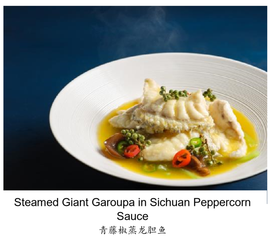 Over at PARKROYAL on Beach Road, Executive Chef Zeng Feng’s seafood creations are whipped up in authentic Sichuan styles. Doused in a sour, spicy and numbing bright yellow sauce, the Steamed Giant Garoupa in Sichuan Peppercorn Sauce ( 青藤椒蒸龙胆鱼 )sees the use of the Giant Garoupa. The seemingly harmless sauce packs a punch with its sour and spicy flavour that is prepared with fresh green peppercorn, directly imported from China.