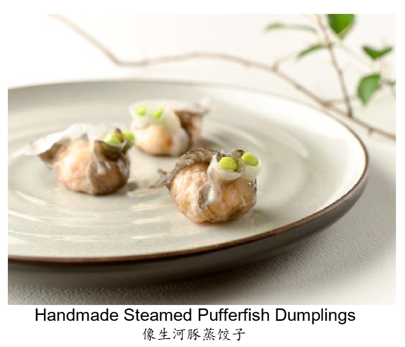 Available exclusively at TOP of UOB Plaza, the crowd-favourite dim sum delicacy Handmade Steamed Pufferfish Dumplings ( 像生河豚蒸饺子 ) are handcrafted by Master Dim Sum Chef Peng Yi Chun and will be available again this year.