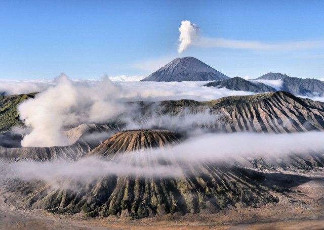 布罗莫是腾格尔火山口中的一座活火山,有着如月球表面般的神奇地貌,是印尼最为壮观的风景之一;凌晨,攀登上最高的Pananjakan 1号观景台,看近处的布罗莫、死火山Batok和远处最高的Semeru火山;