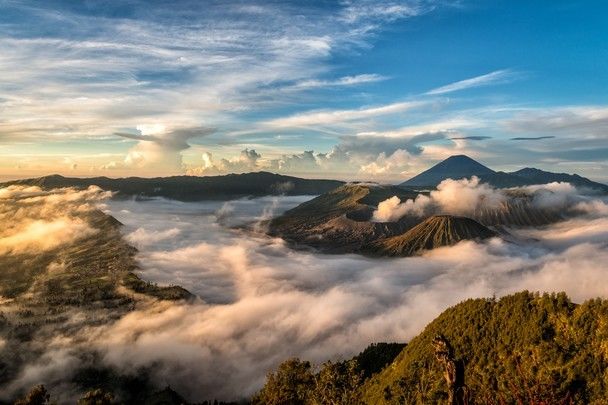 日出时,奇幻的云海,每个瞬间的变幻,仿佛一半置身人间烟火,一半处于蓬莱仙境;Pananjakan2号观景台和Mantigan Hill是另外两处观火山的好去处,穹顶、云海、日出、喷薄而出的火山奇景,犹如置身世界尽头……