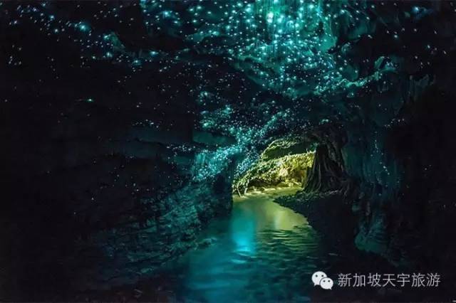 || 新西兰的萤火虫与中国的品种不同,他没有翅膀,不会飞,就像蚕宝宝一样静静趴在洞壁上,一动不动,发出的光亮,他们靠吐丝觅食,大量的萤火虫集聚在一起,吐出的长丝如同珠帘一般,晶莹剔透,泛出蓝光,南岛上的萤火虫只在幼虫形成期的9个月肚皮和尾部发光,成虫后72小时之内死亡,一生极短。虫宝宝怕光、怕声音,所以进洞内要保持安静。由于它们对生存环境的要求近乎苛刻,遇到光线和声音便无法生存。所以此行的拍照时不允许的,只有自己身临其境去体验