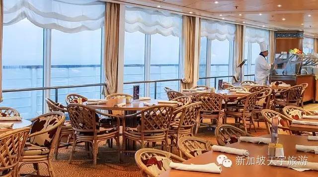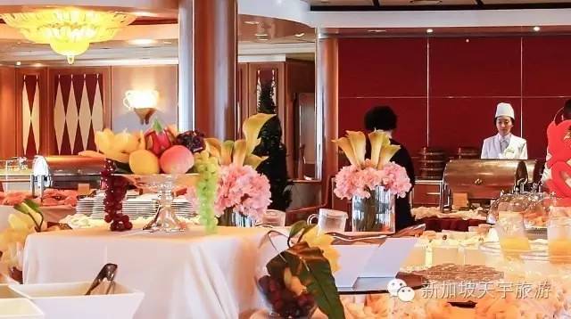 ||第五层有两个餐厅:幻想曲和序曲餐厅。是吃正式晚餐的地方,所以会要求穿着很正式。这也是西方人的用餐礼仪。餐厅服务生多为印度和菲律宾人,也有少数中国服务生,不过负责点菜的就都是外国服务员,大部分都是英文沟通,所以如果英文可以的话,点菜会很方便。 酒店很人性化的是,餐单也都已翻译成了中文,不会说英文用手指出来也一样的。