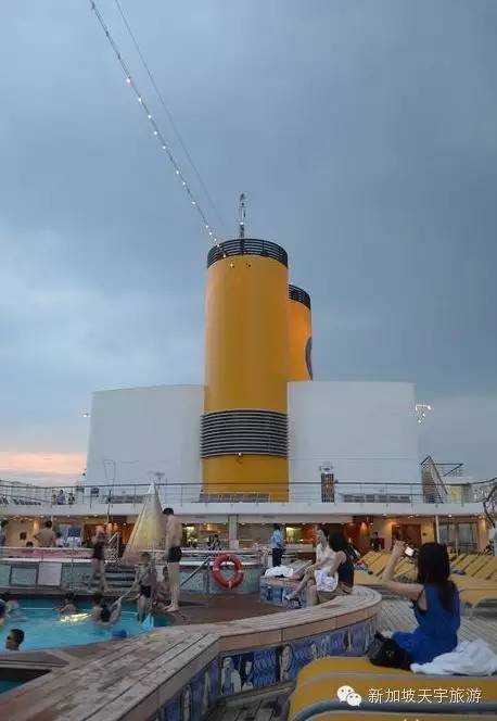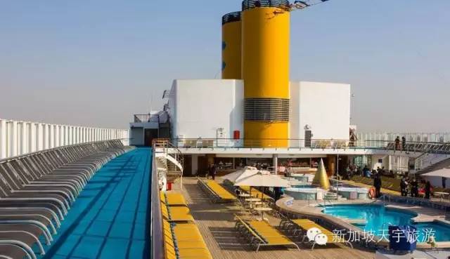 ||第十一层利戈莱托波利乐自助餐厅,一日三餐及下午茶都可以在这里解决,茶、水、咖啡随意畅饮,只要你的胃能装得下,24小时泡在这里都行!餐餐供应数十种美食,每餐都不重样,以中餐为主,配意式西餐,并配有新鲜水果,想怎么吃都行,爽歪歪!11层餐厅出去就是露天甲板了,大部分的娱乐活动也会在这里举行。先四周看看都有些什么,熟悉下地形,嘻嘻~~