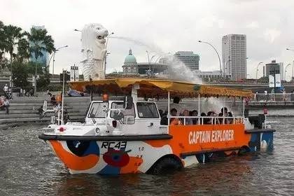 随后抵达SUNTEC CITY新达城的船长探索鸭子船,选择中文讲解服务,体验独一无二的水陆两栖探险之旅。