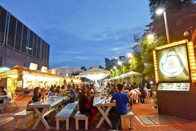 鱼尾狮公园大榴莲艺术中心露天小剧场椰子冰淇淋小贩摊Makansutra美食街各种美食,性价比超高,人均30新左右